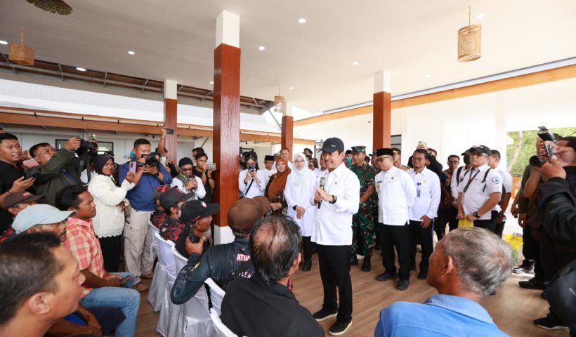 Menteri Kelautan dan Perikanan (KKP), Sakti Wahyu Trenggono, meninjau progres pembangunan Kampung Nelayan Merah Putih (KNMP) Lateng di kawasan pesisir Plengsengan Ancol, Kelurahan Lateng, Kecamatan…